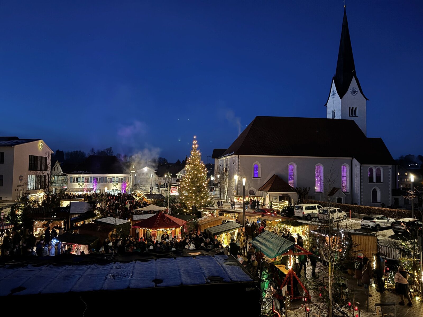 Am Freitag (28. November) wurde das Sulzberger Weihnachtsdorf kurz nach Einbruch der Dunkelheit mit einem kraftvollen Salut der Sulzberger Böllerschützen weithin hörbar eröffnet. Im Anschluss begrüßte Bürgermeister Gerhard Frey die zahlreichen Gäste zu dem dreitägigen Markt. Auf dem neuen Dorfplatz und im stimmungsvoll illuminierten Biergarten des Gasthofs „Zum Hirsch“ standen mehr als 30 liebevoll dekorierte Hütten, an denen ausschließlich Anbieter aus Sulzberg und der Umgebung ihre handgefertigten Produkte, Kunsthandwerk und weihnachtlichen Spezialitäten anboten. Zahlreiche Künstlerinnen und Künstler aus Sulzberg und den umliegenden Ortsteilen sorgten für die musikalische und kulturelle Umrahmung. So erfüllten die Auftritte der Jugendkapelle Rottachsee, des Kirchenchors Sulzberg sowie der Bläsergruppen des Musikvereins Sulzberg und der Musikkapelle Moosbach den Platz mit weihnachtlichen Klängen. Toni Mader lud die Gäste zum gemeinsamen Singen traditioneller Weihnachtslieder ein. Die Theatergruppe Sulzberg bot ein Stück dar. Und auch die Kinder kamen nicht zu kurz: auf sie wartete ein liebevoll gestaltetes Kinderprogramm, inklusive Engelpost.