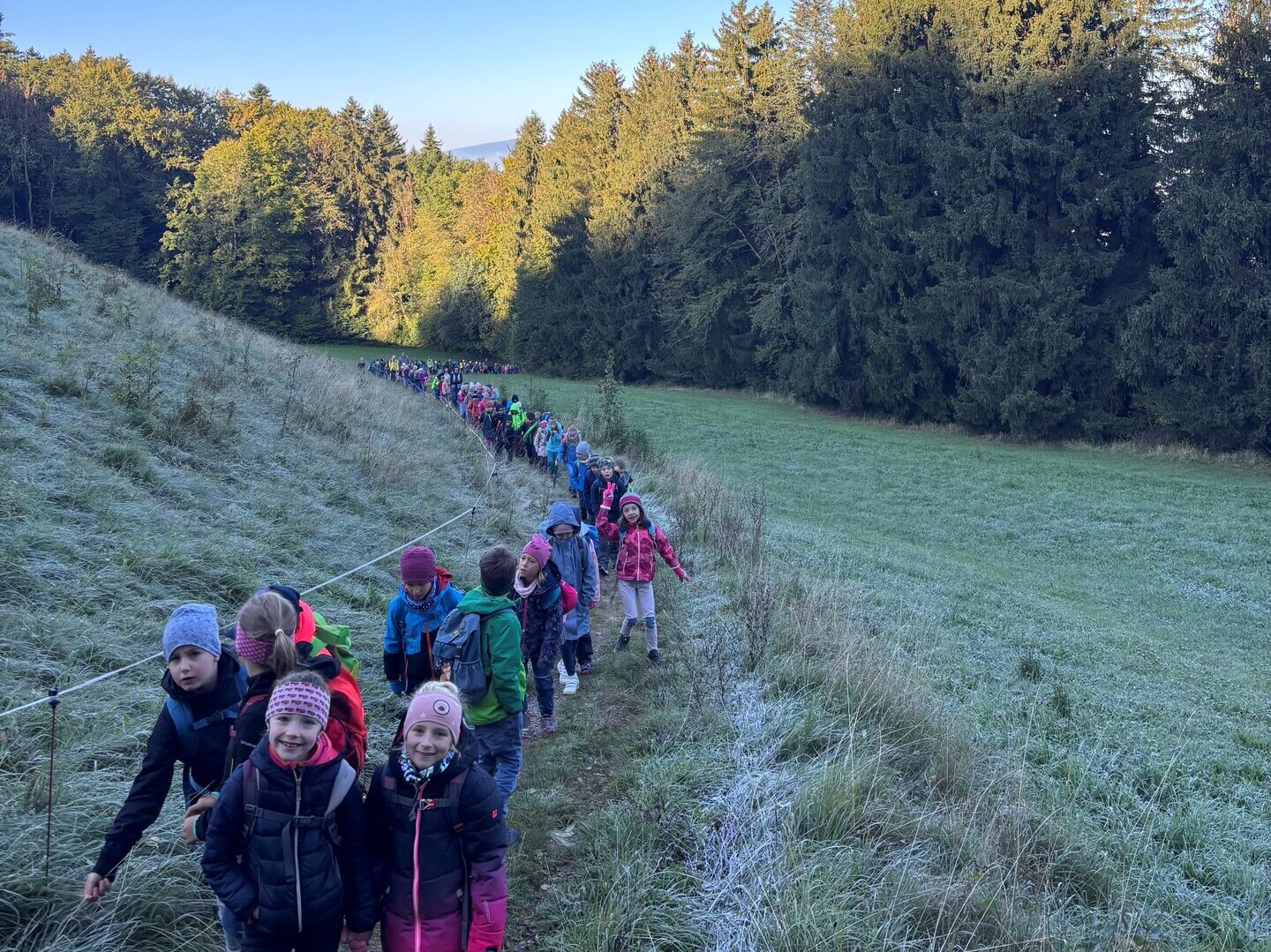 Im Oktober machte die Schule einen Wandertag nach Wachsenegg. Dort berichtete Herr Krug vom Heimatverein den Schülern interessante Einzelheiten vom Bauernkrieg.