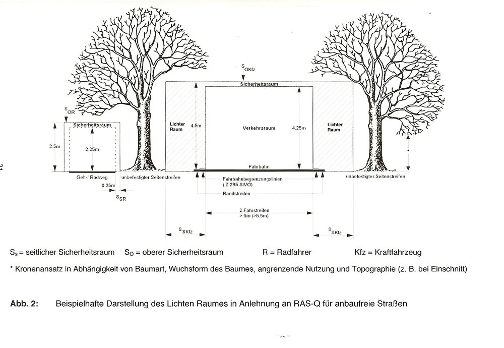 Wir bitten Sie deshalb, dafür Sorge zu tragen, dass nachfolgend genannte Sicherheitsräume (Gehweg und Straße) von Ästen etc. freigehalten werden: