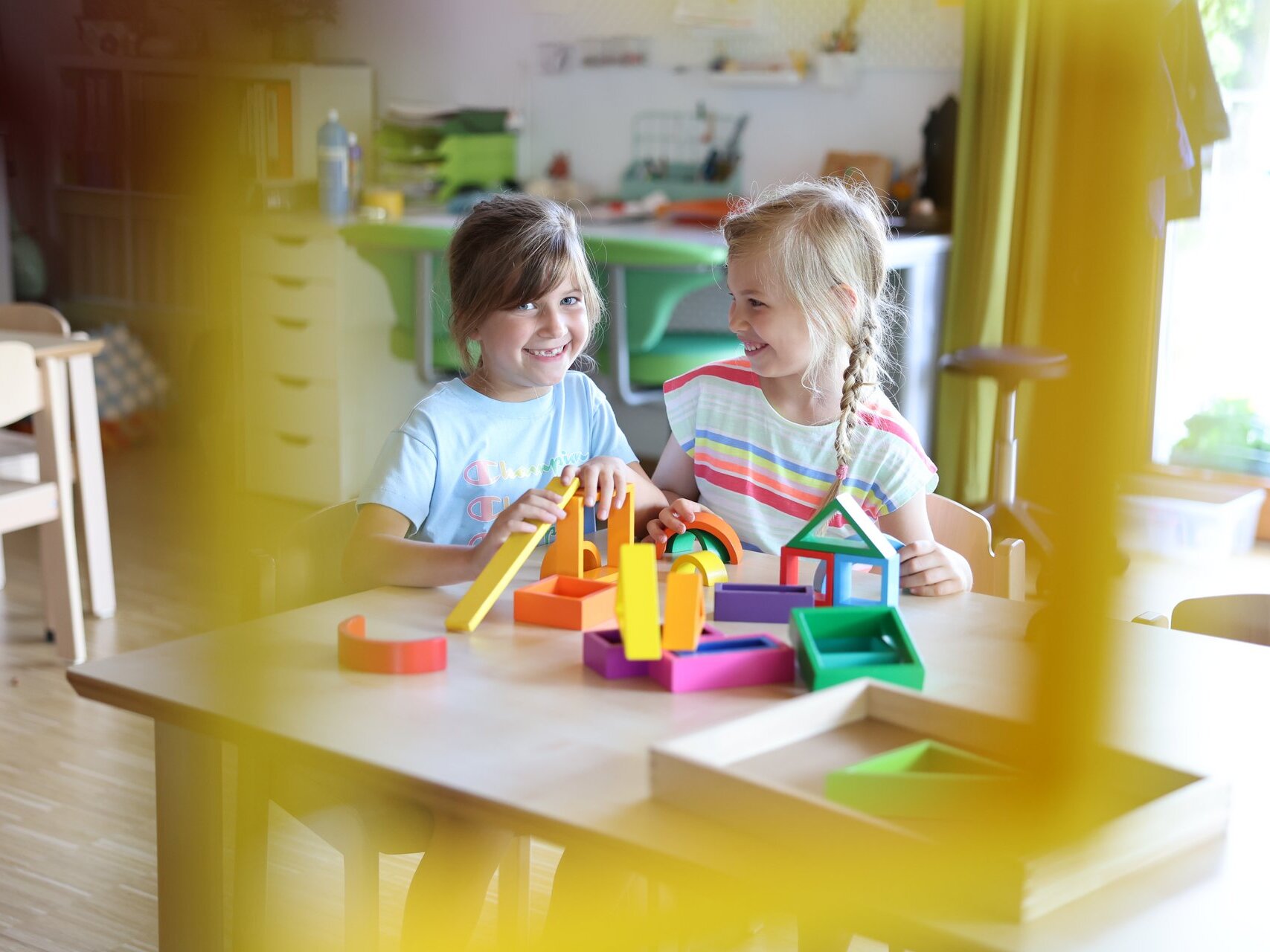 Das im Gruppenraum angebotene Material (Bücher, Spiele, Puzzle, Konstruktionsmaterial und weiteres) orientiert sich an den Fähigkeiten der Kinder, die sich im Laufe des Kitajahres wandeln, an den Jahreszeiten sowie dem Jahresthema oder aktuellen Projekten.