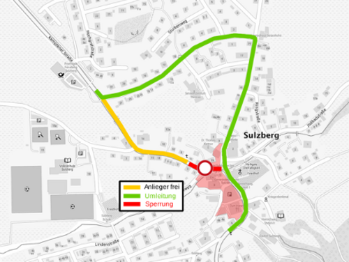 Vollsperrung der Kreisstraße OA 6 im Bereich des neuen Kreisverkehrs Gewerbepark/ Ortsteil See in Sulzberg