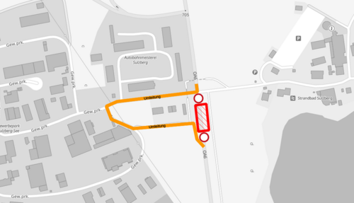 Neuer Kreisverkehr an der OA 6 bei See – Umleitung über den Gewerbepark