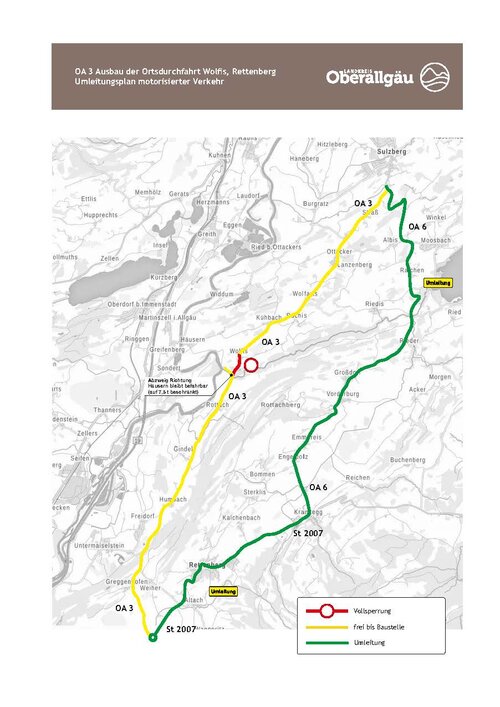 Vollsperrung der Kreisstraße OA 3 in der Ortsdurchfahrt Rettenberg-Wolfis